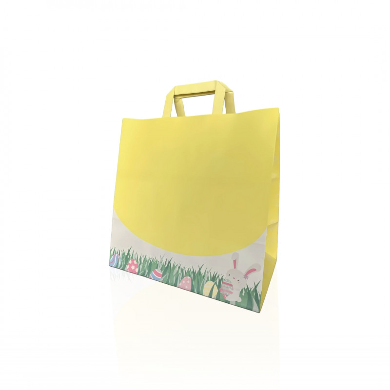 Scatola baulotto elegante e resistente, ideale per il confezionamento di dolci pasquali, colombe artigianali e prodotti di pasticceria. Realizzata in cartoncino di alta qualità, unisce funzionalità ed estetica grazie alla pratica maniglia integrata che facilita il trasporto. Il design raffinato valorizza il prodotto all’interno, rendendola perfetta per pasticcerie, forni artigianali, regali pasquali ed eventi.