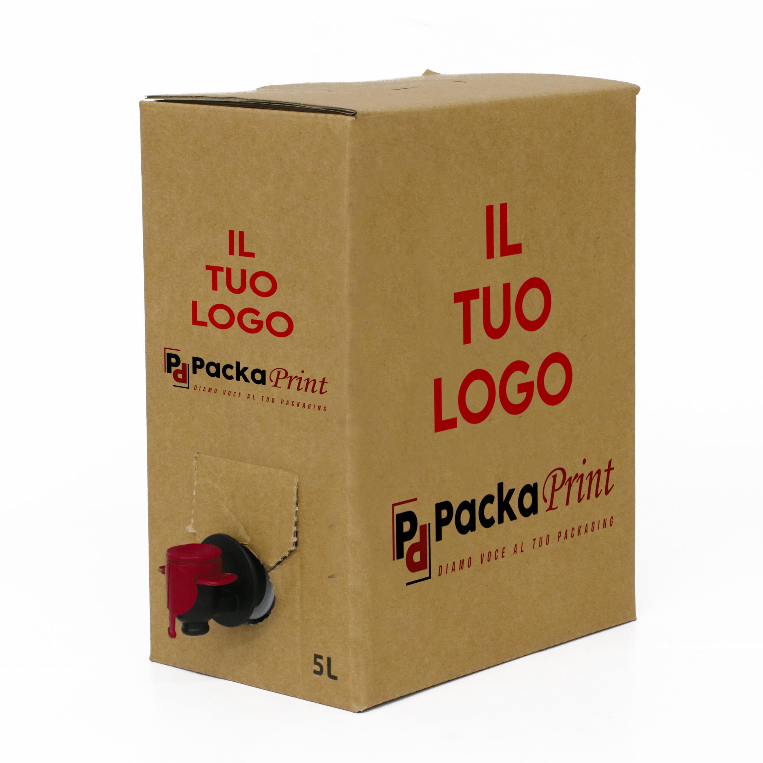 Bag in box in cartone ondulato e sacca metallizzata isolante, utile come elegante dispenser grazie al suo rubinetto. Il rubinetto è disponibile nei colori Verde e Rosso, da indicare nelle note dell'ordine. La box può essere richiesta neutra o con stampa personalizzata. Disponibile anche con grafica Vino e grafica Olio.| Volume | 3 Litri, 5 litri |