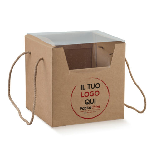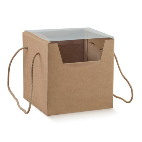 20pz Cesto in cartone conico per confezioni avana con coperchio trasparente mis. 23x11x8 – Assente