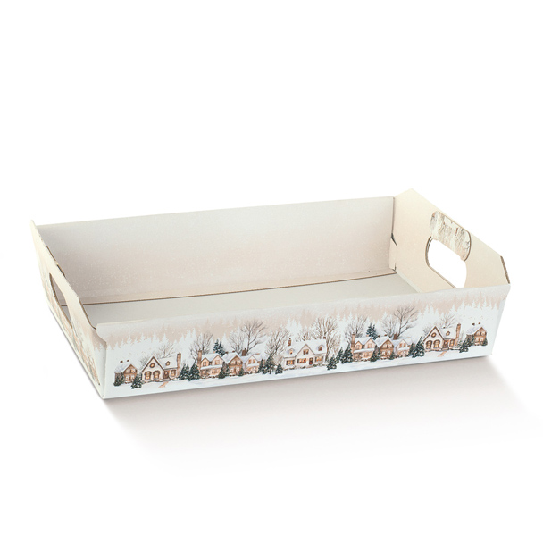 Cesto con maniglie è realizzato con un cartone microonda molto resistente ed è uno degli articoli più utilizzati per confezioni regalo soprattutto a Natale. Stampa Christmas Village Adatto a confezioni regalo e a confezioni per composizioni frutta ,pasticceria, gastronomia ,bar e enoteca. mis. cm 43x30x12 h| Chiusura | Chiusura Facile |