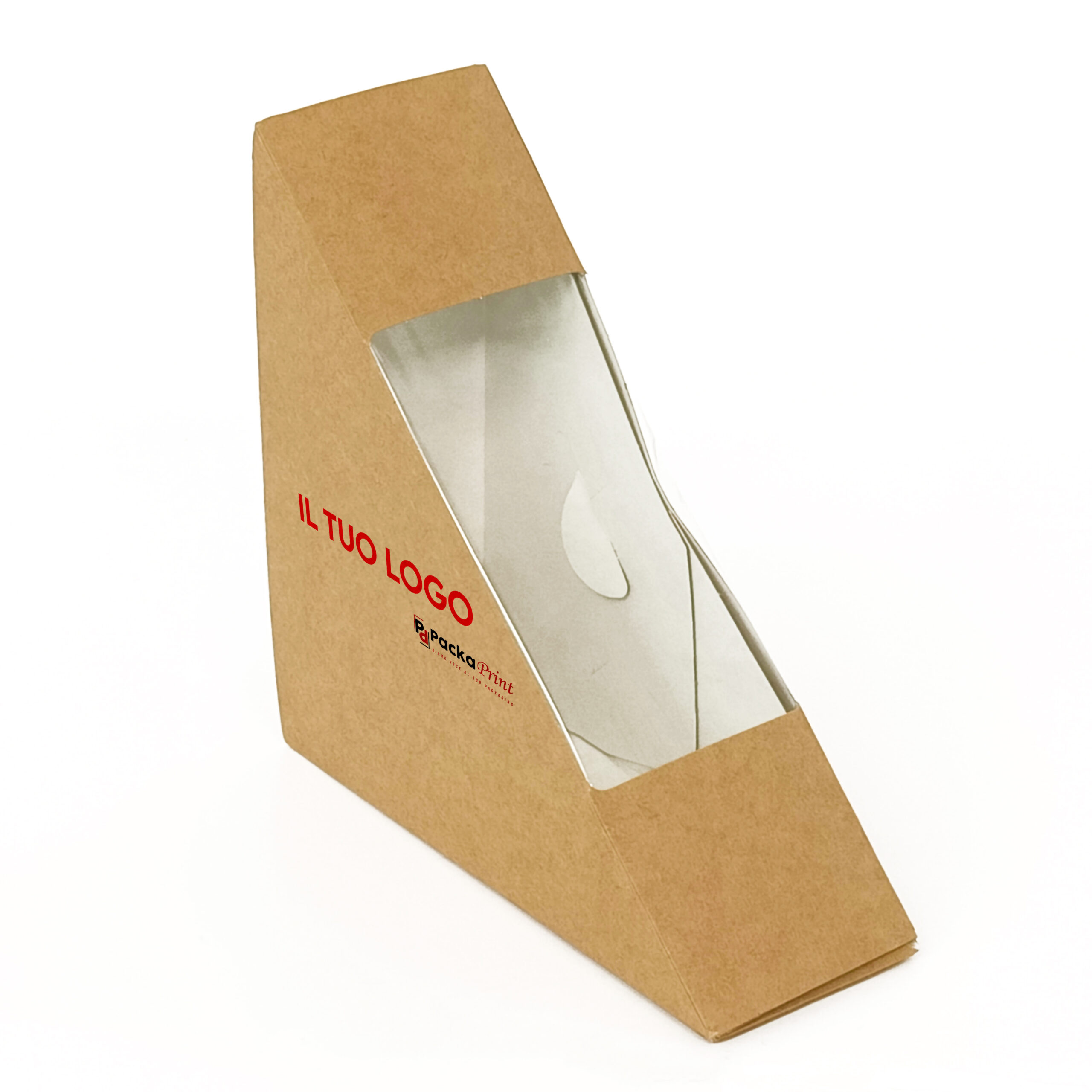 Sandwich box per esposizione e trasporto sicuro di panini. Con pratica chiusura a clip, è resistente a olio e grassi, per garantire freschezza e protezione al prodotto. Ecologica, riciclabile e personalizzabile.| Adatto a | Freddo e congelato, Grasso e Olio |