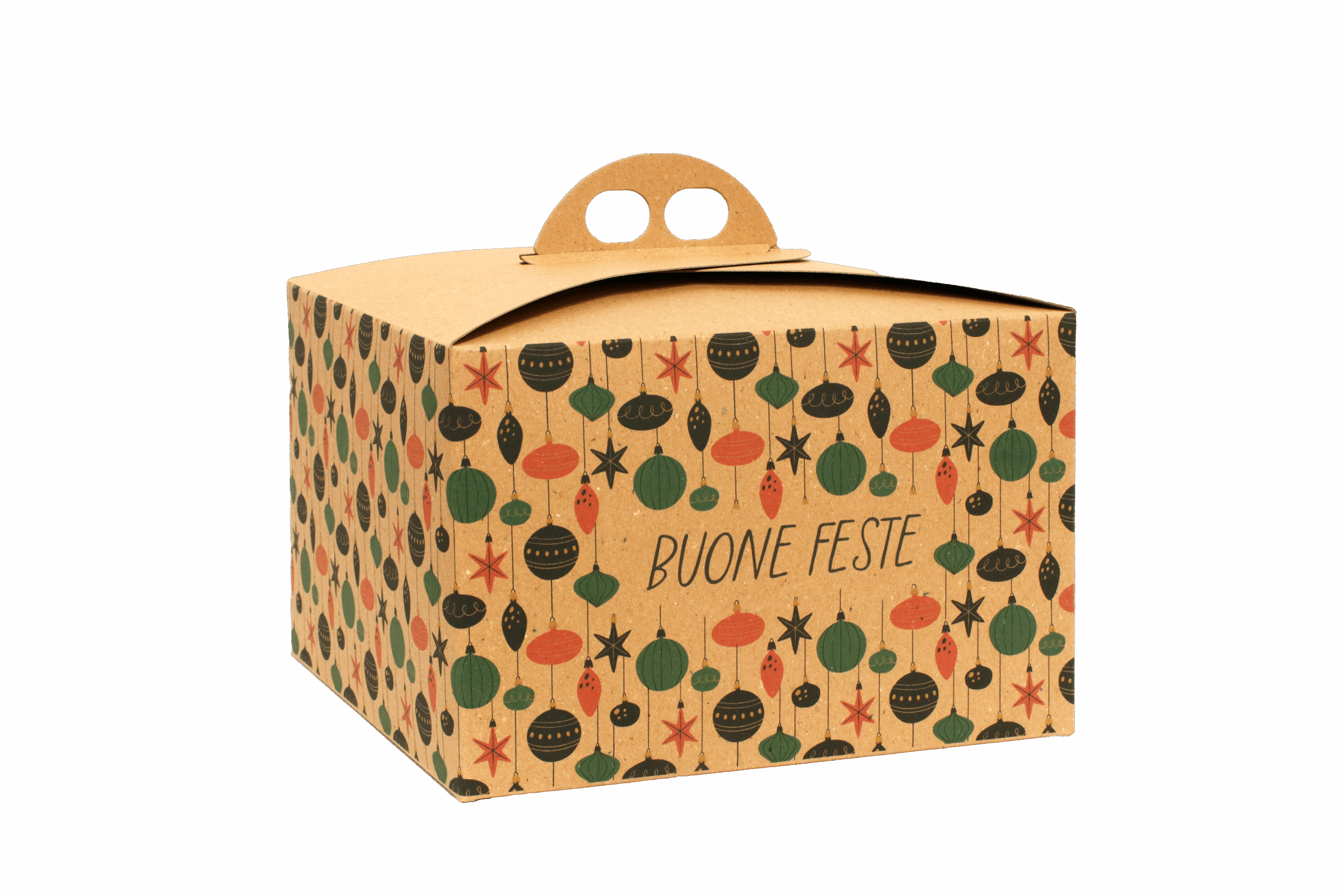 50pz Scatola Porta Panettone Personalizzazione Logo Omaggio modello Classic Xmas baubles blendy kraft mis. 24x24x16 cm