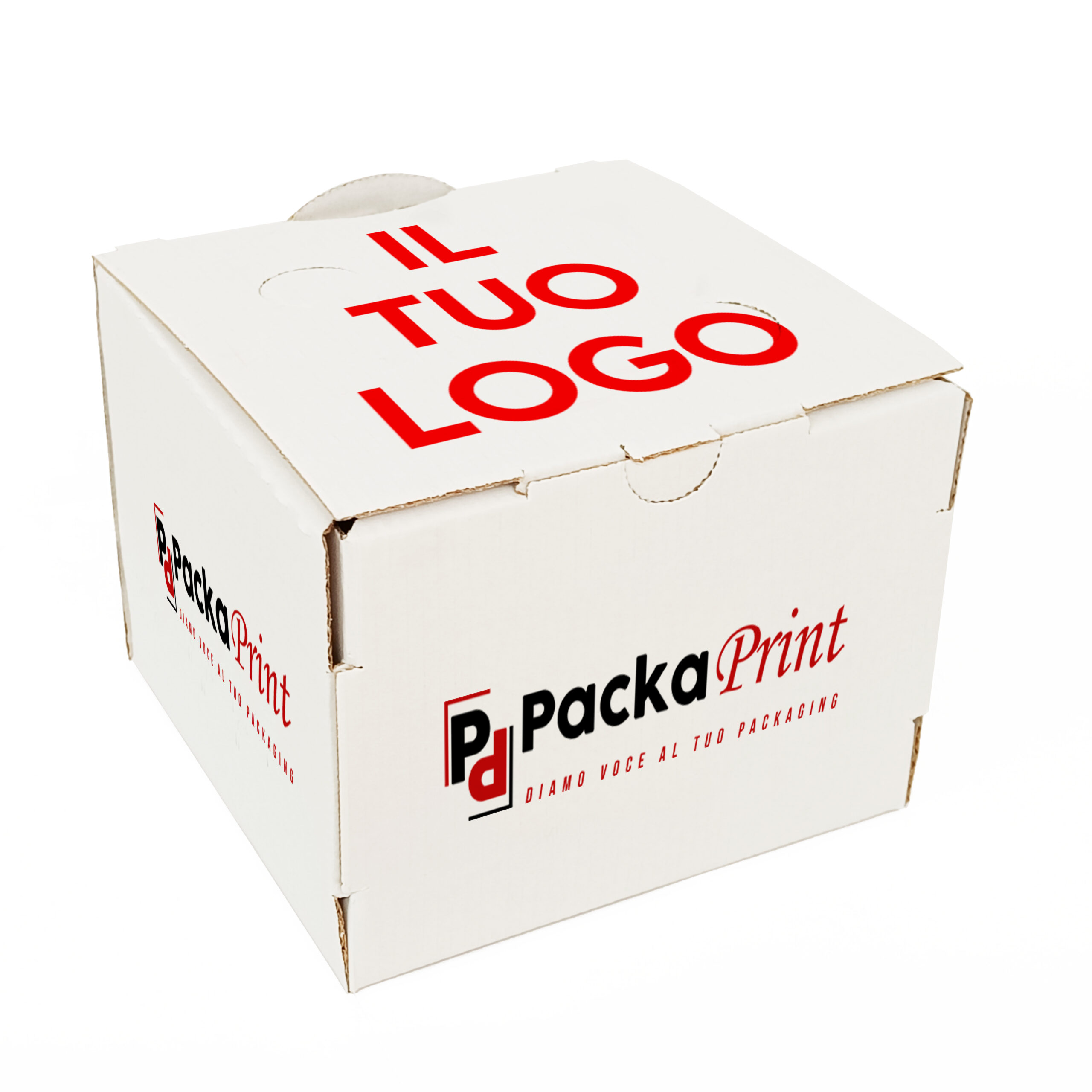 Scatola in cartoncino microonda per trasporto alimenti, ideale per panini e fritture. Sul suo coperchio ha dei fori che permettono la fuoriuscita del vapore mantenendo al meglio gli alimenti in essa contenuti.| Chiusura | Chiusura a Incastro |