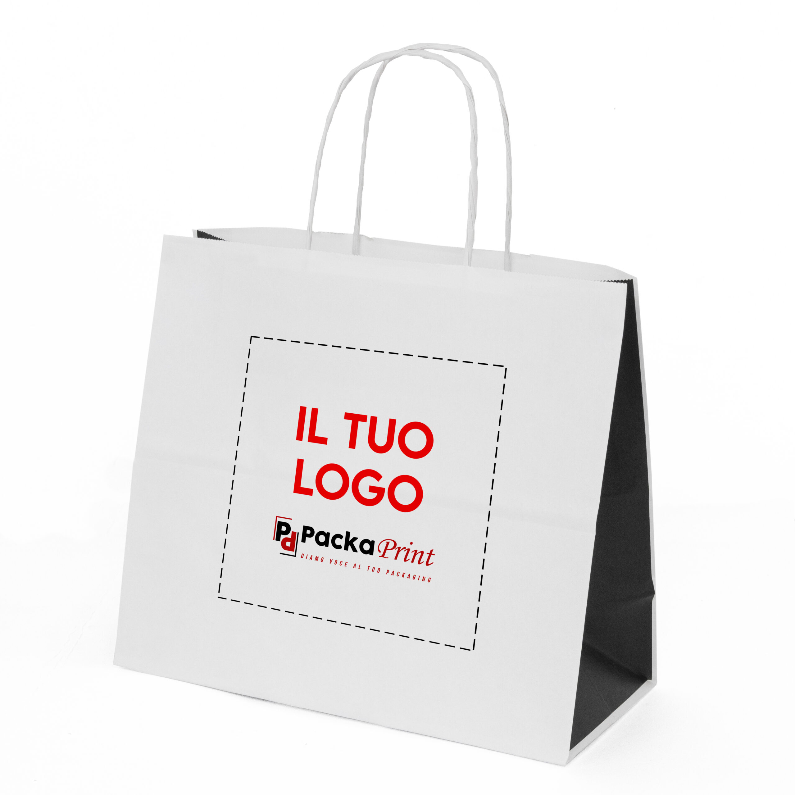 50pz Shopper in Carta Kraft Bianco Stampa sweet Manico Piattina – Varie Misure