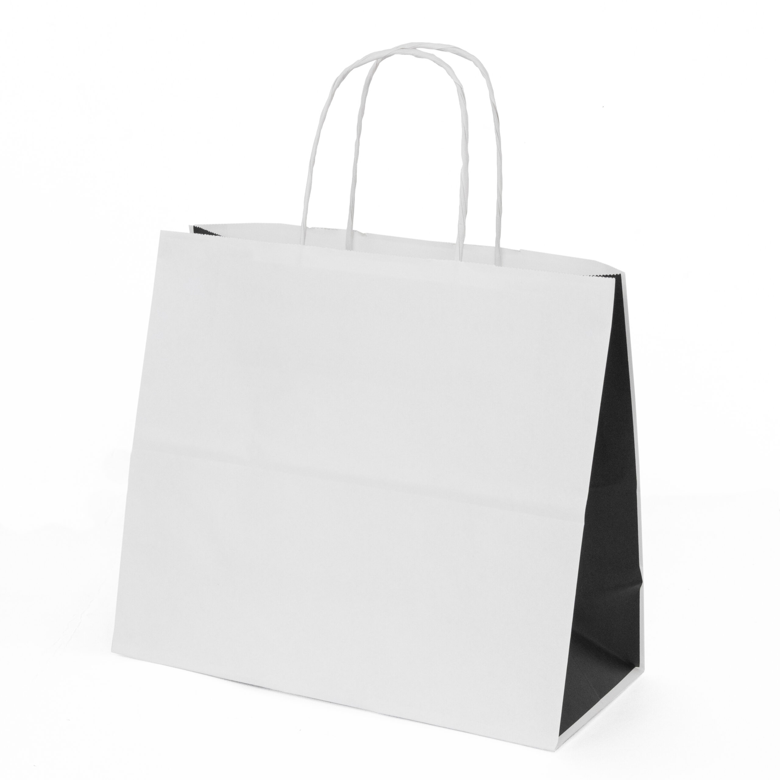 Shopper con manico ritorto, fra i più venduti per praticità, resistenza e comodità. Economico e versatile, si distingue per la presenza di un secondo colore sui lati della busta.| Colore | Bianco |