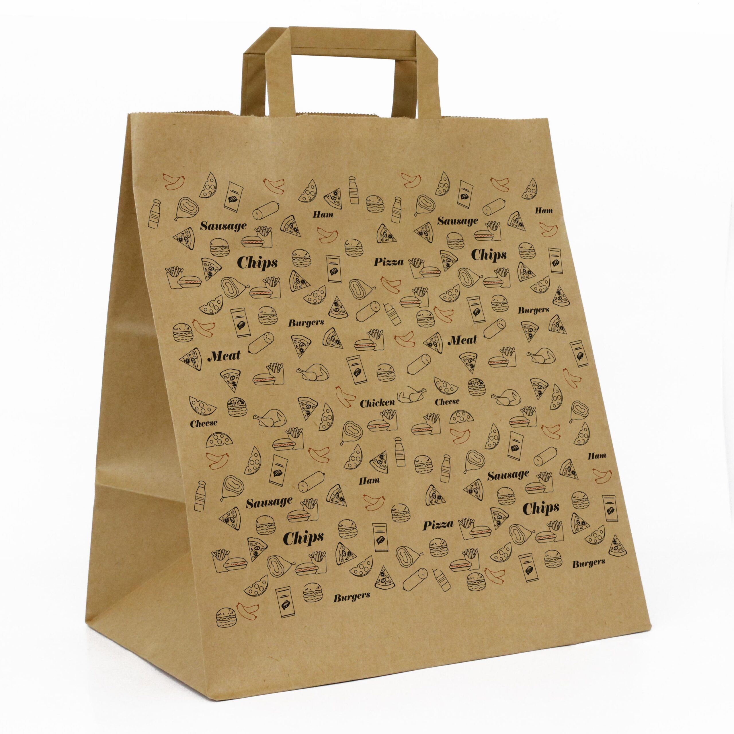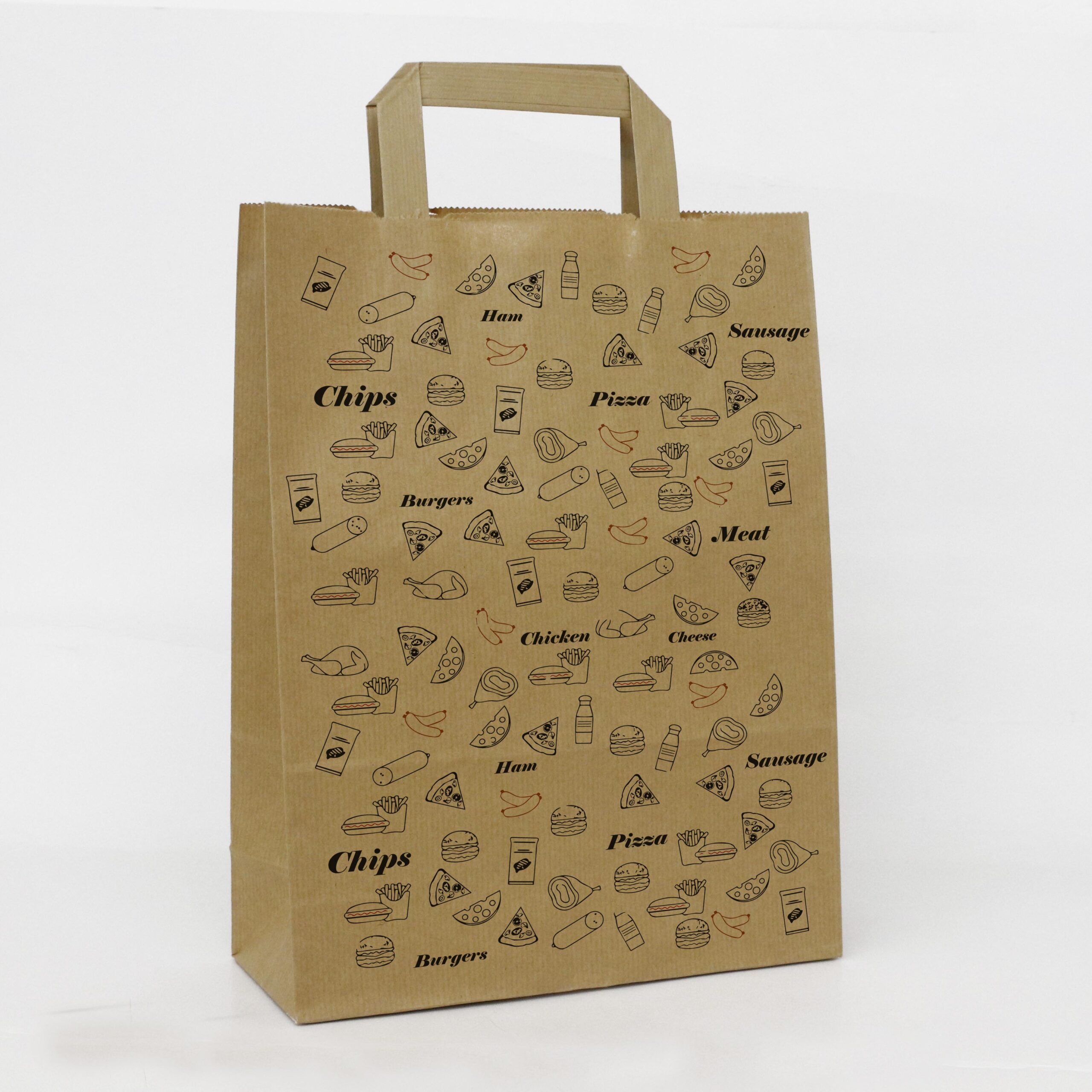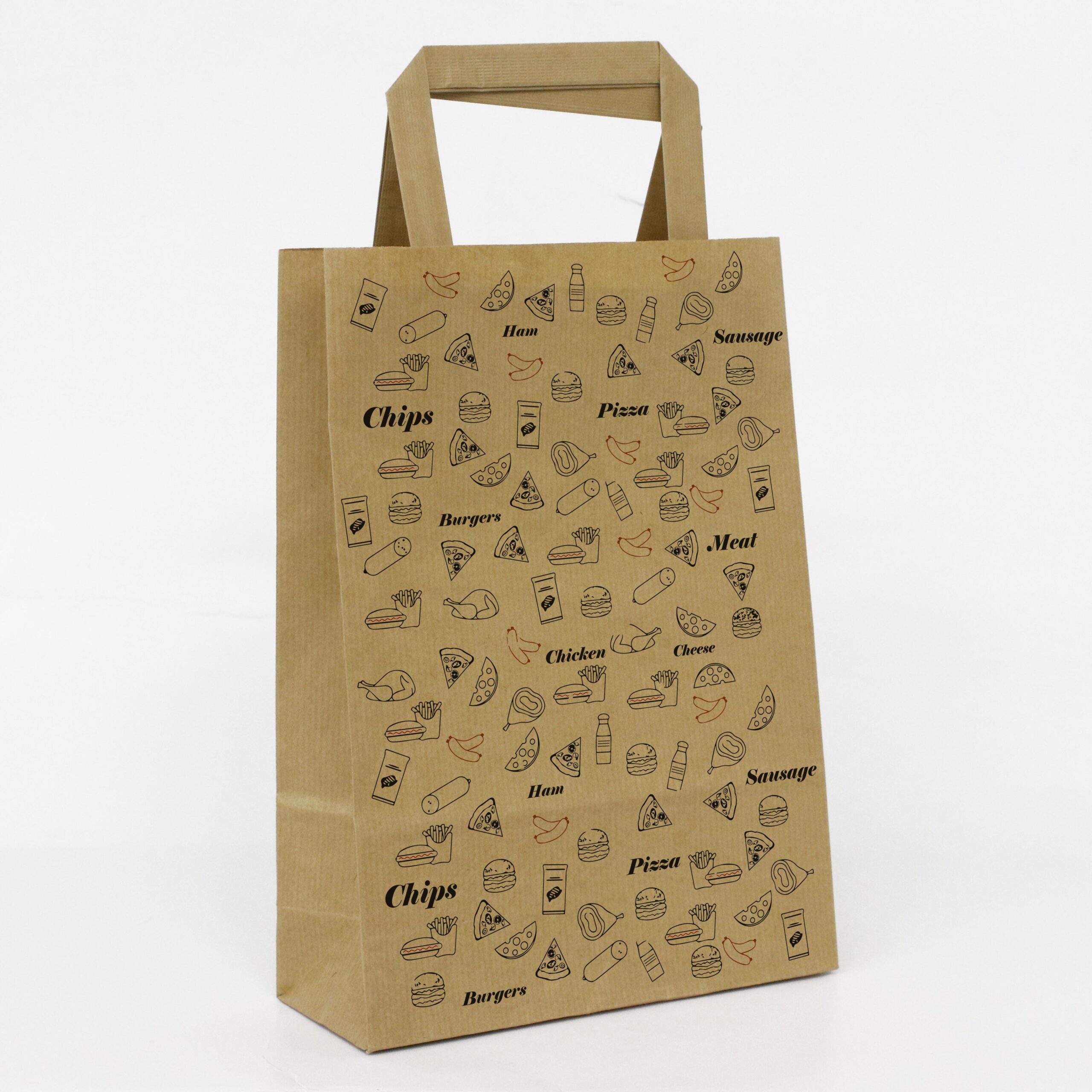 50pz Shopper in Carta Kraft Avana Stampa Gastronomia Manico Piattina – Varie Misure