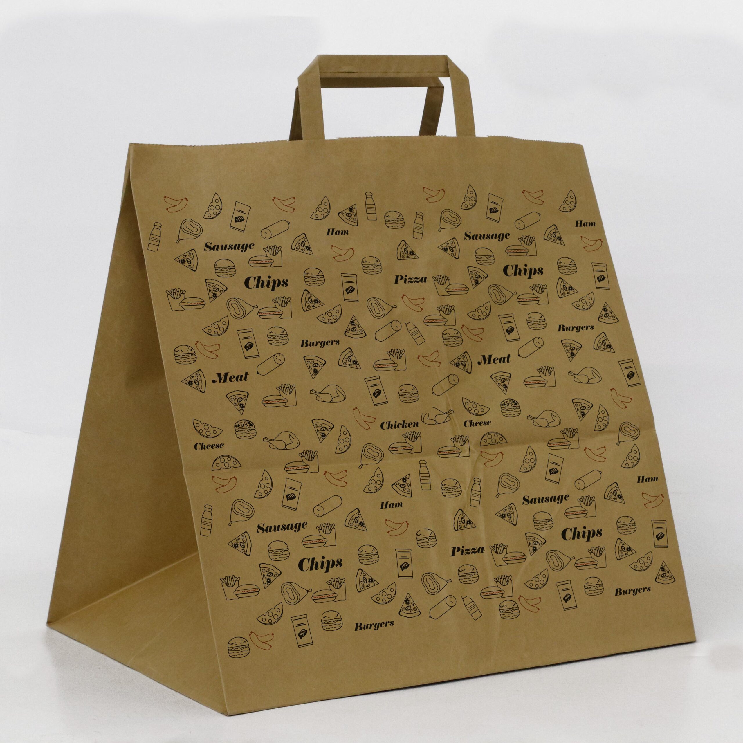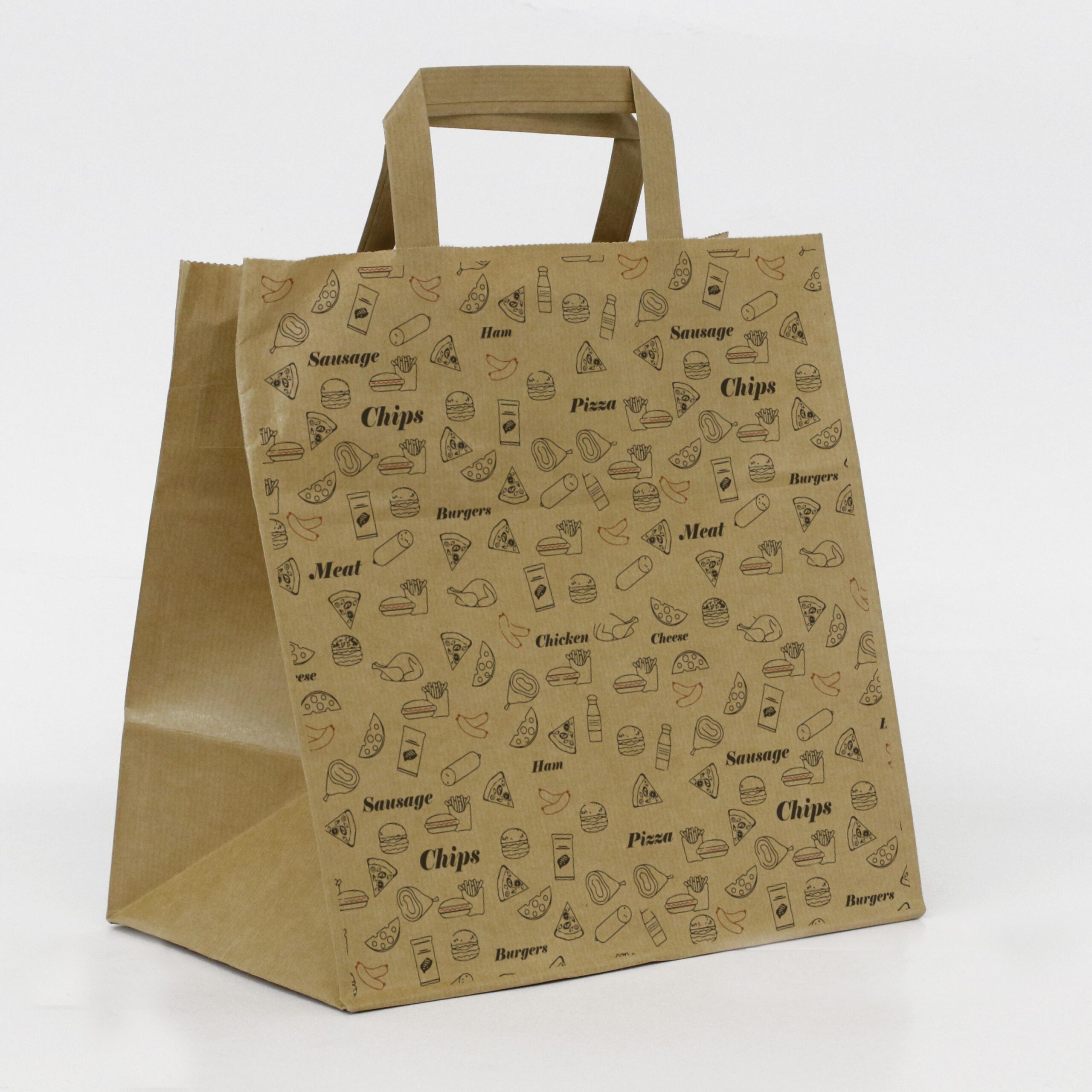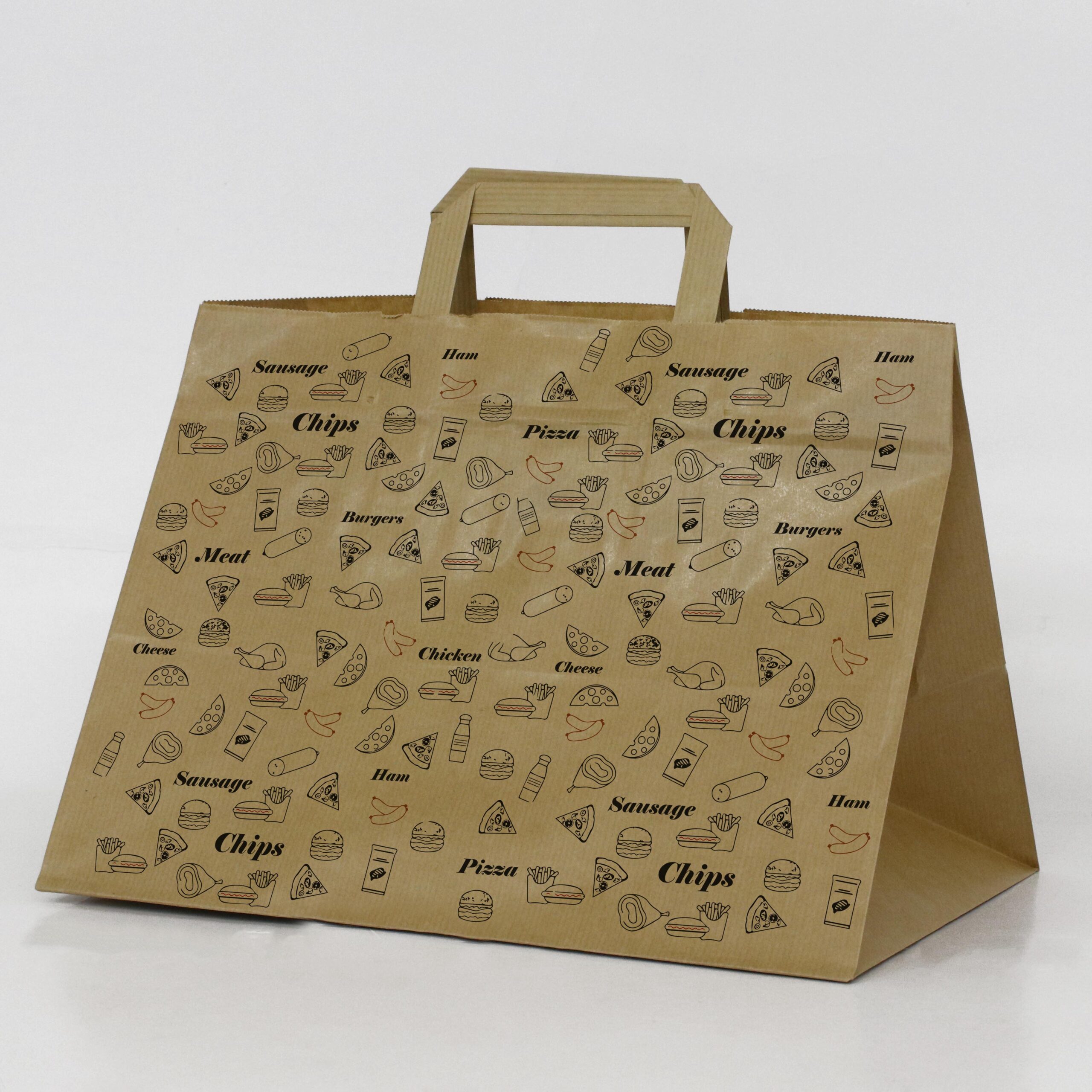 50pz Shopper in Carta Kraft Avana Stampa Gastronomia Manico Piattina – Varie Misure
