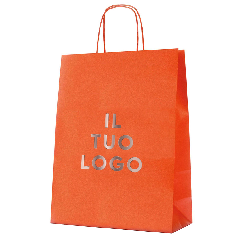 Shopper in carta kraft colorata Arancio manico Ritorto
