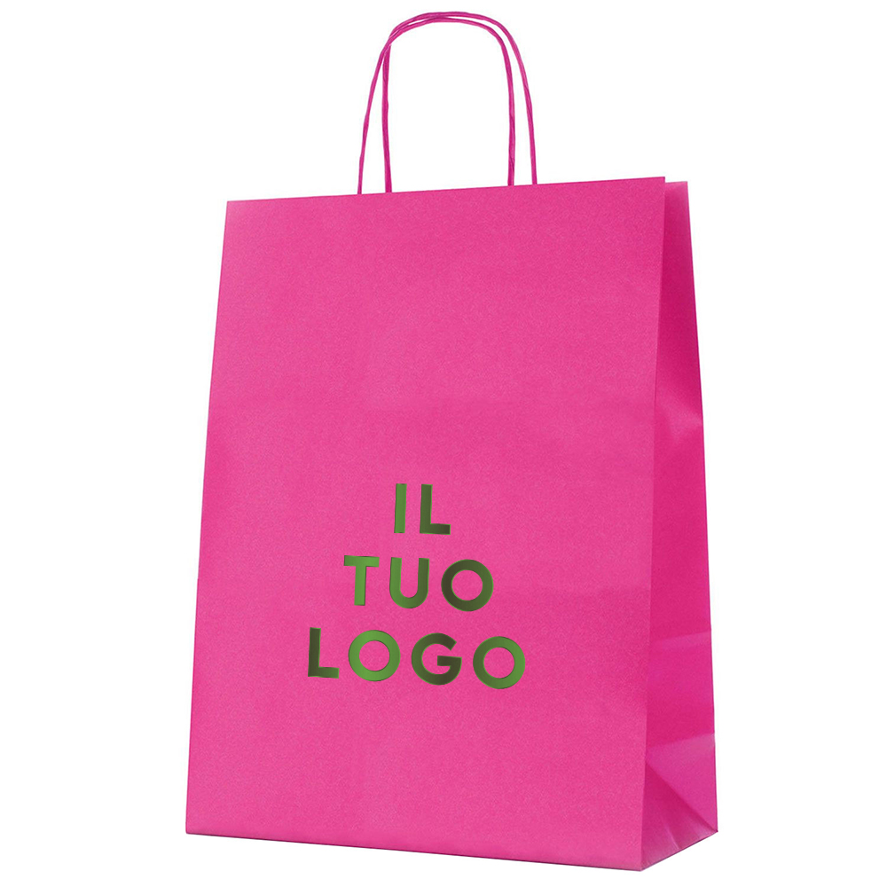 Shopper in carta kraft colorata FUCSIA manico Ritorto