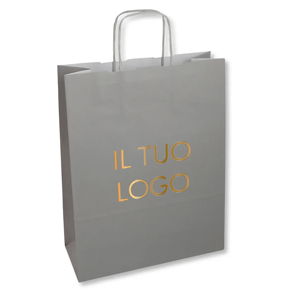 Shopper in carta kraft colorata Grigio manico Ritorto
