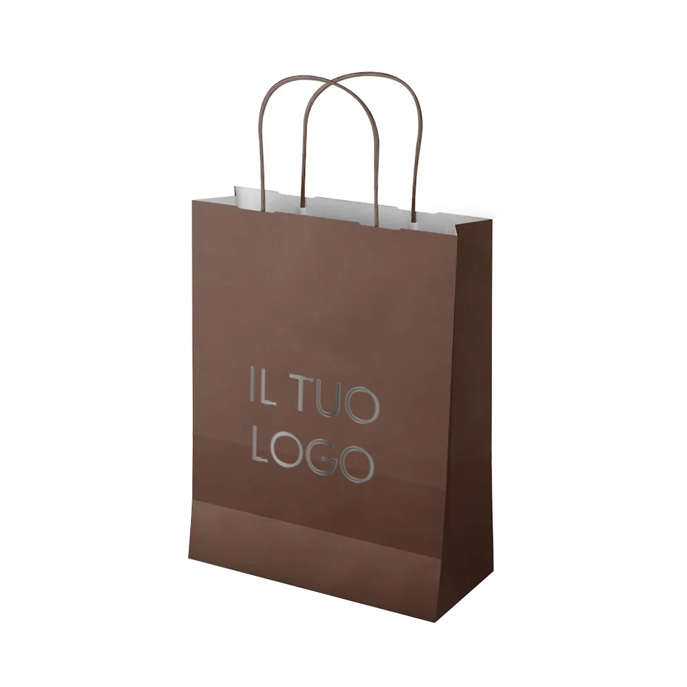 Shopper in carta kraft colorata Marrone manico Ritorto