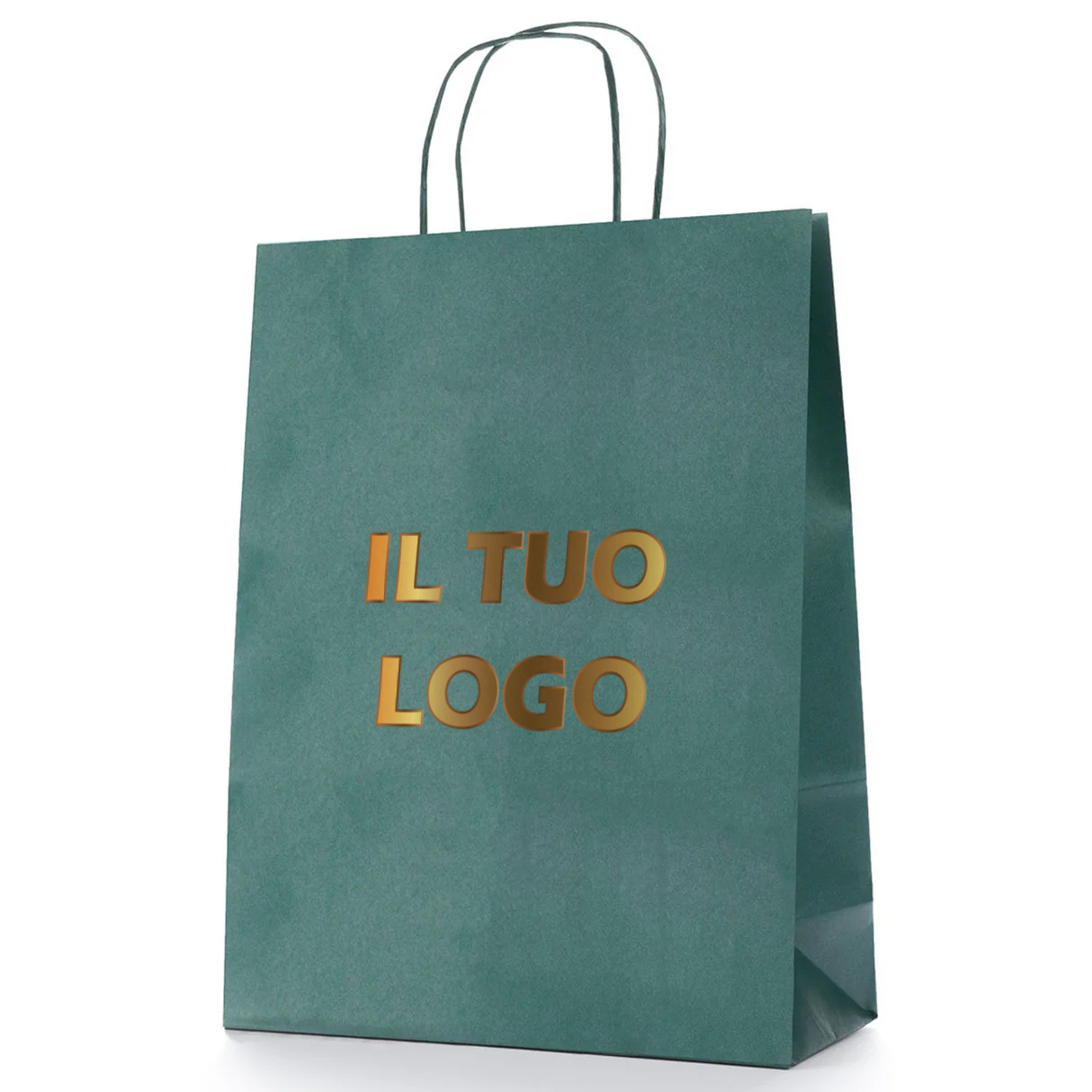 Shopper in carta kraft colorata Verdone manico Ritorto