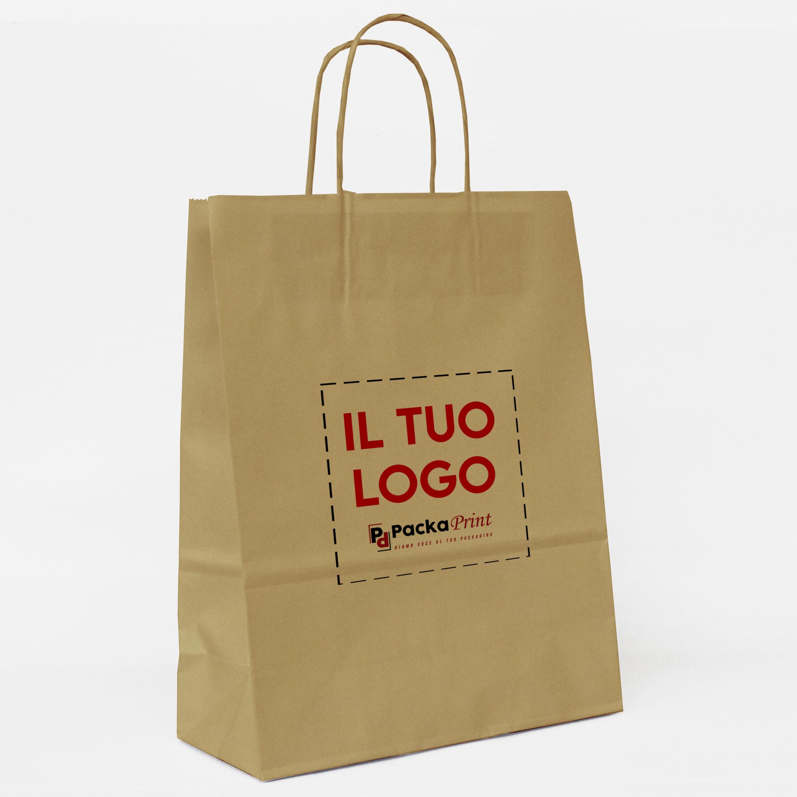 100pz Shopper in Carta Kraft Manico Ritorto Duo 24+11×21 cm