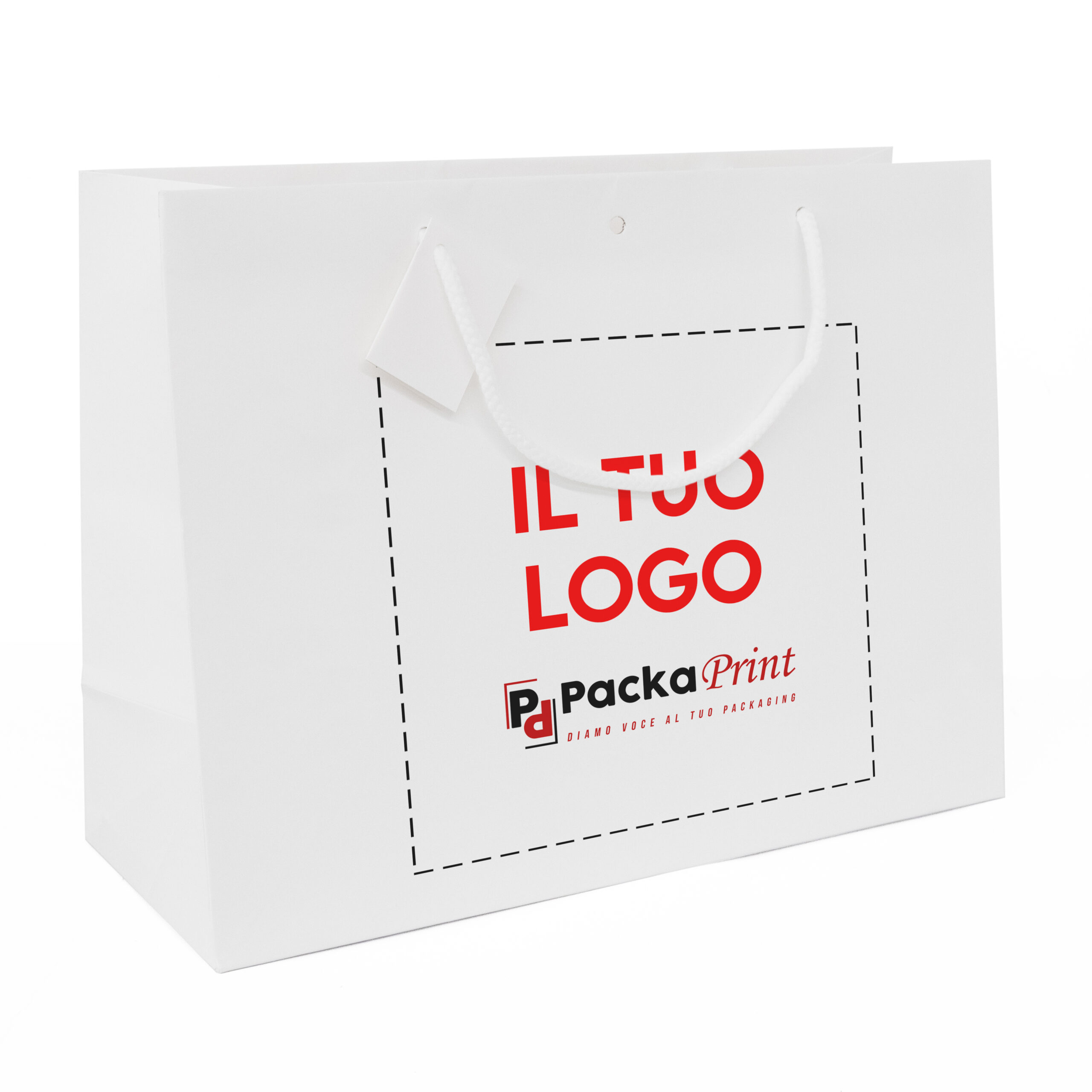 Shopper con manico cordino, realizzata in carta rigida. Ideale per contenere abbigliamento e per idee regalo.| Colore | Bianco |