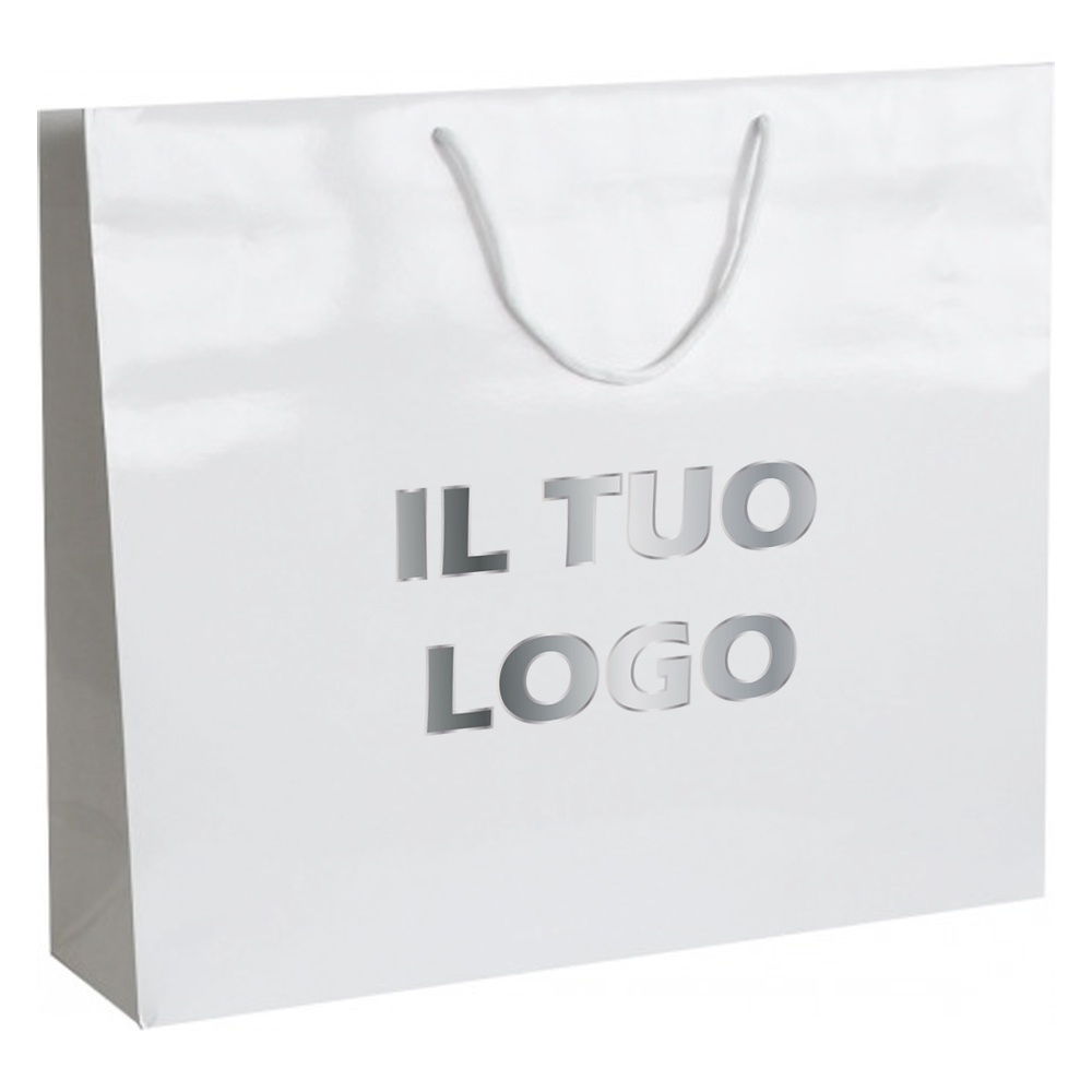Shopper in Carta Lusso Manuale Bianco lucido Plastificato
