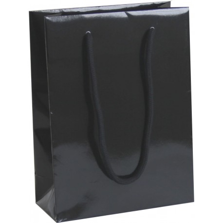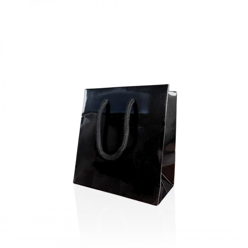 Shopper in Carta Lusso Manuale Nero Lucido Plastificato
