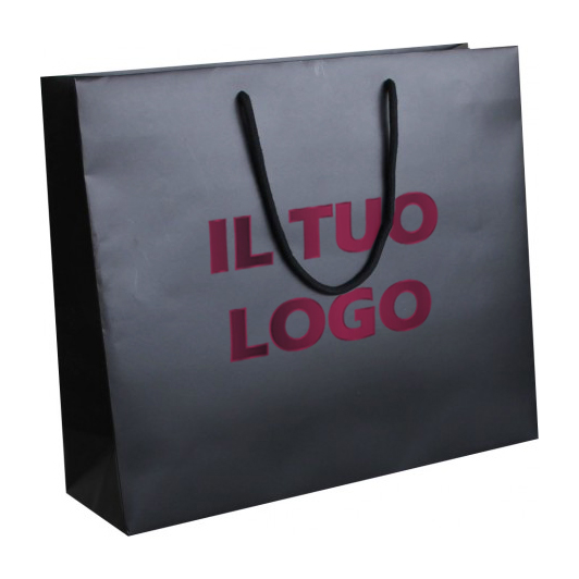 Shopper in Carta Lusso Manuale Nero Opaco Plastificato