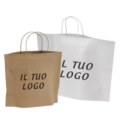 PackaPrintBuste Shopper in Carta100pz Shopper in Carta Take Away Manico Ritorto Marrone 32+20×32 cm
